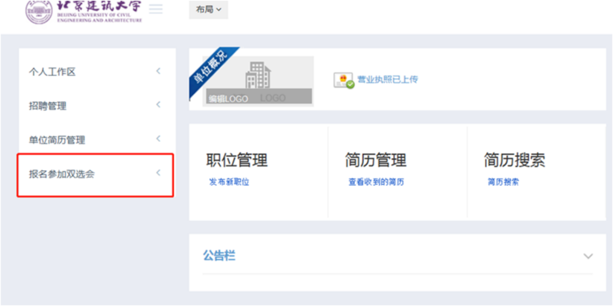 本次双选会采取网上报名,请您登陆北京建筑大学就业信息网:job.bucea.edu.cn,新用户注册后退出重新登录,在就业网【报名参加双选会】点击报名参加。已经注册的单位可以直接点击报名。报名截止日期为4月21日11:00(报满即止)。本场双选会免收参会费用,根据报名企业招聘需求量以及与我校专业匹配情况、企业资质、可提供岗位数量、报名时间综合考虑筛选参会单位(优先审核通过本学期未参加过我校线下双选会的企业,建议用人单位选择本学期一场双选会报名即可)。